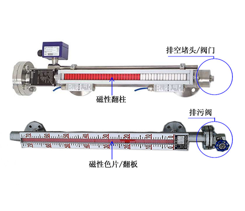 根據(jù)浮力原理,浮子在測(cè)量管內(nèi)隨液位的升降而上、下移動(dòng),浮子內(nèi)的永久磁鋼通過(guò)耦合作用,驅(qū)動(dòng)紅、白色翻柱翻轉(zhuǎn)180°,液位上升時(shí)翻柱由白色轉(zhuǎn)為紅色,下降時(shí)由紅色轉(zhuǎn)為白色,從而實(shí)現(xiàn)液位指示。