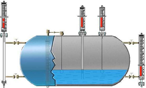 磁翻板液位計(jì)廣泛用于石油、化工、油田、醫(yī)藥、食品、酒業(yè)等行業(yè)中各類貯液罐、貯槽、貯液池、反應(yīng)罐、發(fā)酵罐內(nèi)液體、油田、液化氣、液氫、強(qiáng)酸堿液、弱酸堿液、發(fā)電廠鍋爐汽包、高低加、回水箱高低壓加熱器、凝結(jié)器、蒸發(fā)患有主其他壓力容器內(nèi)與1Cr8NitTi、304+PTEE(聚四氟乙烯)、316L、PVC、PP相容液體介質(zhì)的液位、液面及兩種不同介質(zhì)界面測量與顯示。