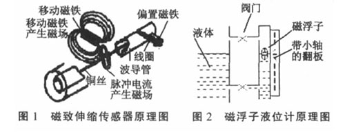 磁致伸縮線性液位傳感器,采用不導(dǎo)磁的不銹鋼管(}J}(桿)、磁致伸縮線(波導(dǎo)線)、可隨液面或界面移動(dòng)的浮球(內(nèi)含磁環(huán))和電子部件等組成(見圖1)