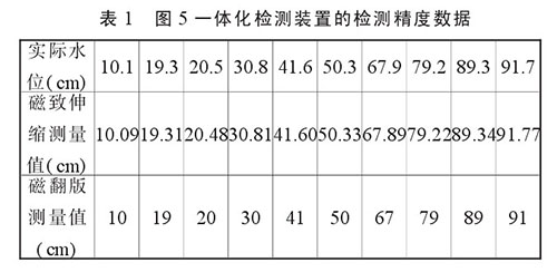 我們把圖5所示的一體化檢測(cè)裝置進(jìn)行了水位檢測(cè)實(shí)驗(yàn),其檢測(cè)結(jié)果與實(shí)際水位值見表