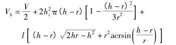 根據(jù)質(zhì)量計(jì)算公式m=QV可知,需能找到不同液位H下對應(yīng)的體積V,然后乘以溫度修正過的液氨密度Q液氨,即得出準(zhǔn)確的氨罐噸位。通過查閱相關(guān)資料,臥式氨罐體積V與高度H可用下式進(jìn)行計(jì)算: