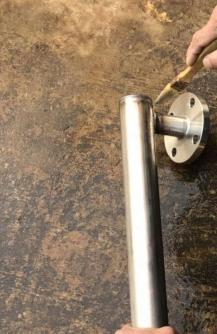3、焊接法蘭,對主管頂端封頭進(jìn)行焊接;法蘭和通液管的連接(焊接)并矯正兩法蘭的水平度