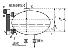 c)用測深鋼卷尺測量從測點到水面間的距離ha ,實際零位空高h0=ha-D/2,此狀態(tài)即液位計測量零點。