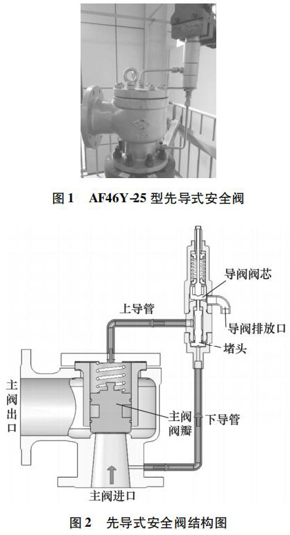 立式儲(chǔ)罐液位計(jì)常見(jiàn)的故障包括: 主閥導(dǎo)閥泄漏、導(dǎo)閥超壓不動(dòng)作、主閥未隨導(dǎo)閥動(dòng)作。主閥導(dǎo)閥泄漏失效原因: 密封面臟污或損傷,零部件卡阻、密封墊圈老化變形; 導(dǎo)閥超壓不動(dòng)作失效原因: 導(dǎo)閥密封面銹蝕粘合或材料變形、導(dǎo)閥彈簧過(guò)緊或卡阻、導(dǎo)閥下導(dǎo)管堵塞; 主閥未隨導(dǎo)閥動(dòng)作失效原因: 主閥運(yùn)動(dòng)卡阻、導(dǎo)閥排氣量過(guò)小。然而,安全閥起跳不回座故障在試驗(yàn)過(guò)程及工業(yè)現(xiàn)場(chǎng)也是非常常見(jiàn)的,國(guó)內(nèi)對(duì)于立式儲(chǔ)罐液位計(jì)起跳不回座失效分析的相關(guān)研究較少。本研究以某公司生產(chǎn)的 AF46Y-25 型立式儲(chǔ)罐液位計(jì)為研究對(duì)象,研究導(dǎo)閥結(jié)構(gòu)并分析其動(dòng)作過(guò)程。在對(duì)其開(kāi)展動(dòng)作性能試驗(yàn)時(shí),發(fā)現(xiàn)該安全閥實(shí)際回座壓力遠(yuǎn)低于標(biāo)準(zhǔn)要求,排放時(shí)間過(guò)長(zhǎng),回座失效。因此,對(duì)其進(jìn)行受力分析,以探討回座失效的原因。