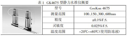 GeoKon 4675 型靜力水準(zhǔn)儀是一種高精密液位系統(tǒng),該系統(tǒng)設(shè)計(jì)是 用于測(cè)量多點(diǎn)相對(duì)沉降的系統(tǒng)。在使用中,一系列的傳感器容器均采用PVC 液管聯(lián)接,每一容器的液位由一精密振弦式力傳感器測(cè)出,該傳感 器內(nèi)有一個(gè)自由懸重,一旦液位發(fā)生變化,懸重的懸應(yīng)浮力即被傳感器感,精確測(cè)出小至 0.025mm 的垂直變化。在多點(diǎn)系統(tǒng)中,所有傳感器的垂 直位移均是相對(duì)于其中的一點(diǎn),該點(diǎn)的垂直位移是相對(duì)恒定的或者可用其它人工觀測(cè)手段準(zhǔn)來(lái)確定。