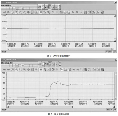 然后利用多孔法蘭(結(jié)合LNG項(xiàng)目的實(shí)際情況來(lái)選擇法蘭的孔數(shù)以及尺寸大?。?,將其接到LNG罐頂?shù)臏囟茸兯推鹘泳€箱內(nèi)部,再使用多芯電纜把4~20mA信號(hào)發(fā)送到控制系統(tǒng)?,F(xiàn)場(chǎng)安裝RTD熱電阻建議選用雙支,方便以后檢修更換。圖2為LNG儲(chǔ)罐溫度顯示。