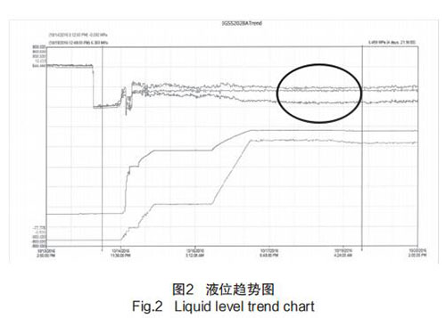 方家山核電機(jī)組自商運(yùn)以來(lái),MSR 疏水箱內(nèi)多次發(fā)生液位高漂的問(wèn)題,并且還存在表計(jì)之間偏差較大的問(wèn)題,發(fā)生一支液位計(jì)與其他兩支相比偏差較大(大約 10%)的情況(見(jiàn)圖 2 液位趨勢(shì)圖),主要問(wèn)題存在于探桿和表頭。
