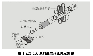 南10站試用磁致伸縮液位計類型為ACD-1DL系列,該類型液位計主要傳輸部分為:波導絲、浮子磁環(huán)、永久磁環(huán)、傳輸部分及檢測機構等部分組成。傳感器的電路在波導絲上激勵出脈沖電流,該電流沿波導絲傳播時會在波導絲的周圍產生脈沖電流磁場。脈沖電流磁場與浮子產生的磁場相遇,在相遇空間產生一個扭轉波脈沖,脈沖沿波導絲傳回并由檢出機構檢出,通過測量脈沖電流與扭轉波的時間差可以精確地確定浮子所在液面位置。