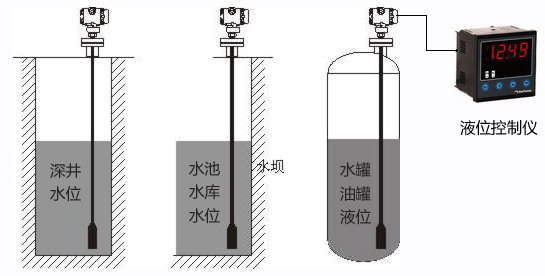 液位計應(yīng)安裝在靜止的深井、水池中時,通常把內(nèi)徑Φ45mm左右的鋼管(不同高度打若干小孔,以便水通暢進(jìn)入管內(nèi))固定于水中,然后將靜壓投入式液位計放入鋼管中即可使用。變送器的安裝方向?yàn)榇怪?,投入式安裝位置應(yīng)遠(yuǎn)離液體出入口及攪拌器。在有較大振動的使用場合,可在變送器上纏繞鋼絲,利用鋼絲減震,以免拉斷電纜線。測量流動或有攪拌的液體的液位時,通常把內(nèi)徑Φ45mm左右的鋼管(在液體流向的反面不同高度打若干小孔,以便水通暢進(jìn)入管內(nèi))固定于水中,然后將靜壓投入式液位計放入鋼管中即可使用。 濕度傳感器探頭 , , 不銹鋼電熱管 PT100 傳感器 , , 下圖為不同工況下的投入式液位計的安裝方式: