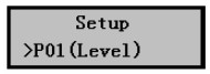 2)按按擊Mode鍵,儀表即可進入?yún)?shù)設置菜單,*先進入的就是P01(Level)液位標定菜單。