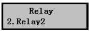 6)設置好繼電器1參數(shù)后點Mode鍵退回Relay繼電器設置菜單,按擊▼鍵選擇需要設置的其他繼電器:例如右圖,表示設置繼電器2。按擊OK鍵進入設置,方法同上。