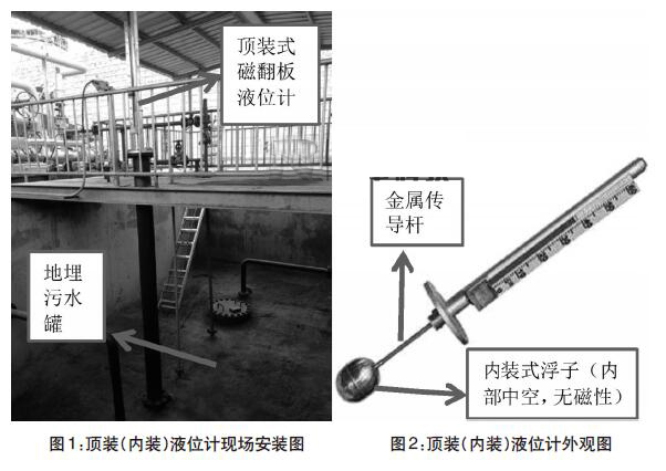 某氣田某井區(qū)集氣站地埋污水罐采用的是頂裝式真空夾套型磁翻板液位計,該區(qū)塊集氣站使用的是地埋污水罐,主要作用是對集氣站內(nèi)生產(chǎn)污水進行沉降。在運行過程中,污水罐液位計故障導致顯示數(shù)據(jù)不準,一方面對污水液位情況掌握不準確,另一方面會出現(xiàn)不安全因素,甚至安全事故。該井區(qū)地埋污水罐使用的液位計為頂裝式磁翻板(磁浮子)液位計,根據(jù)液位計磁性材質(zhì)所在位置的不同頂裝式真空夾套型磁翻板液位計也稱為內(nèi)裝式真空夾套型磁翻板液位計。本文就頂裝式真空夾套型磁翻板液位計在延長氣田某井區(qū)應用情況進行探討并對目前頂裝式真空夾套型磁翻板液位計常見故障提出解決措施。