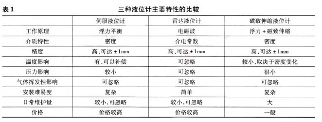三種市場上常見液位計(jì)的主要特性如表1所示。