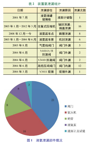 從圖1和表2可以直觀看出:裝置容易泄漏的部位有三個(gè),分別為閥門、氨壓機(jī)和鶴管。所以,應(yīng)重點(diǎn)對(duì)這幾個(gè)部位采取防泄漏措施。